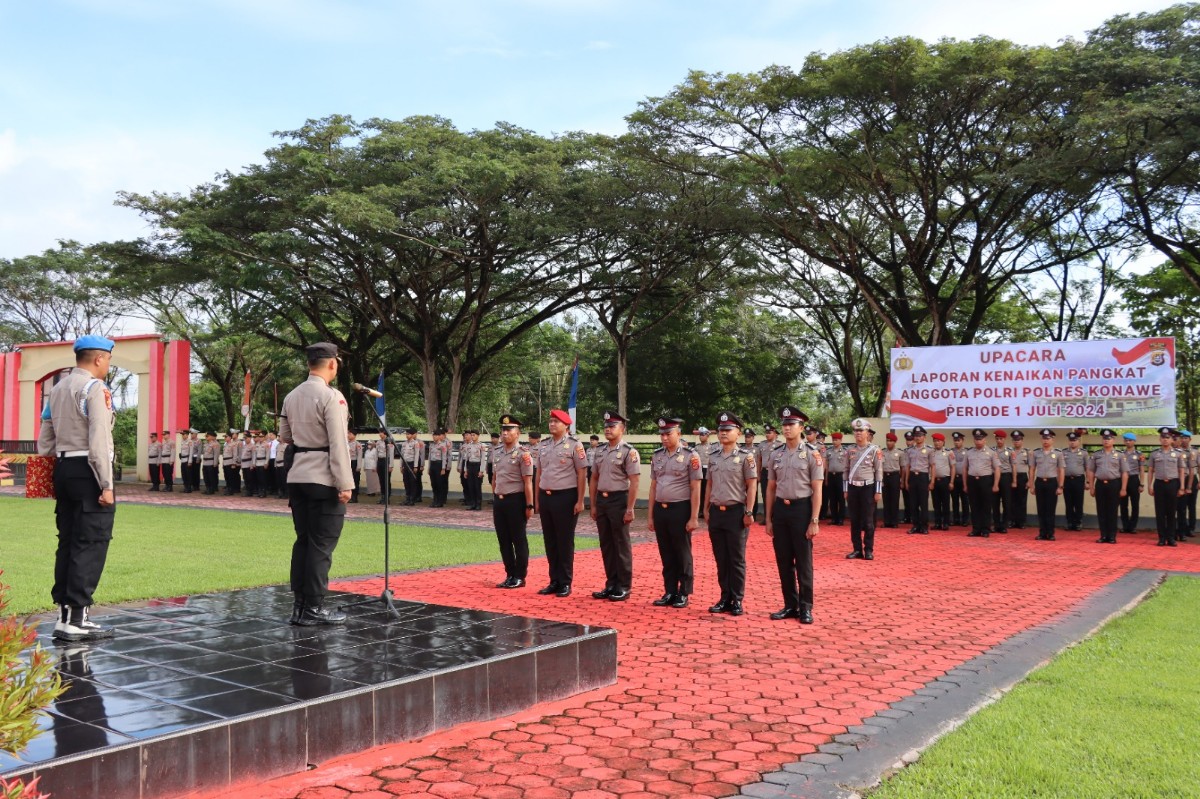 “Kenaikan pangkat ini merupakan penghargaan dari negara atas dedikasi dan pengabdian saudara-saudara dalam melaksanakan tugas,” ujar Kapolres Konawe.