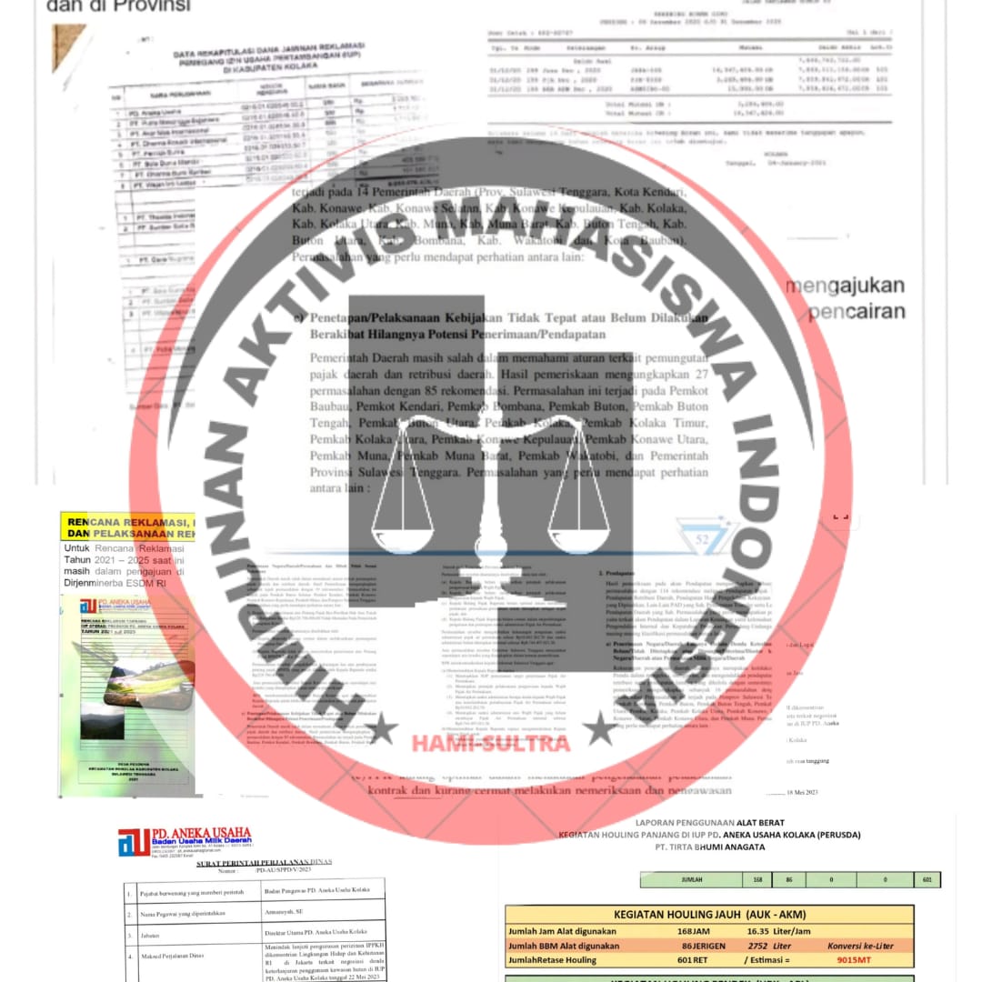 Selain itu, HAMI Sultra mendesak Kementerian ESDM melalui Ditjen Minerba untuk segera mencabut IUP/IUPK serta membekukan RKAB PD Aneka Usaha Kolaka yang hingga kini masih melakukan aktivitas produksi dan penjualan, meskipun sanksi administratif belum dipenuhi.