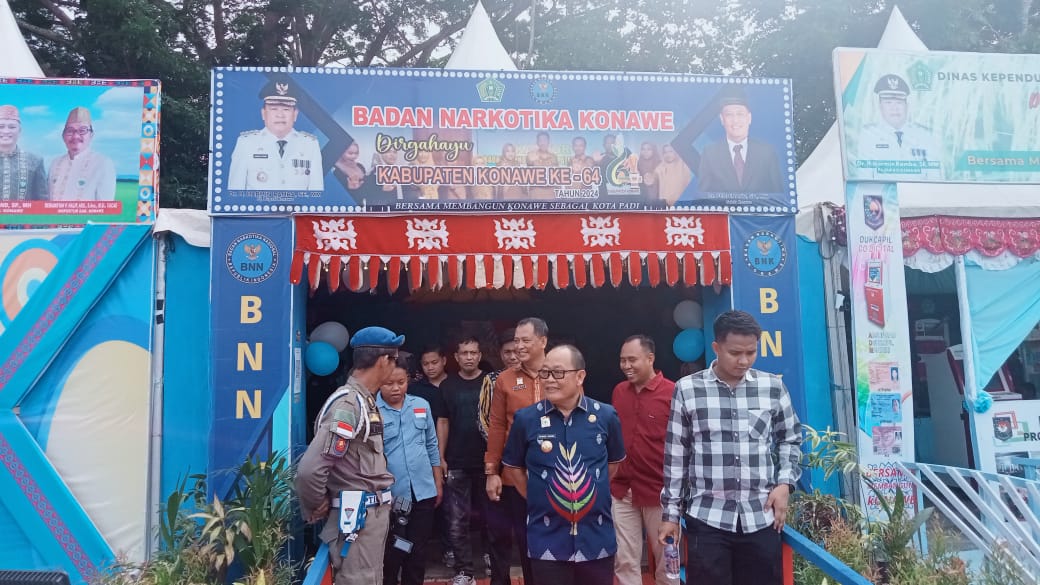 Ketgam: Penjabat Bupati Dr. H. Harmin Ramba, SE, MM (tengah) usai berkunjung ke Stand Pameran Badan Narkotika Kabupaten Konawe.
