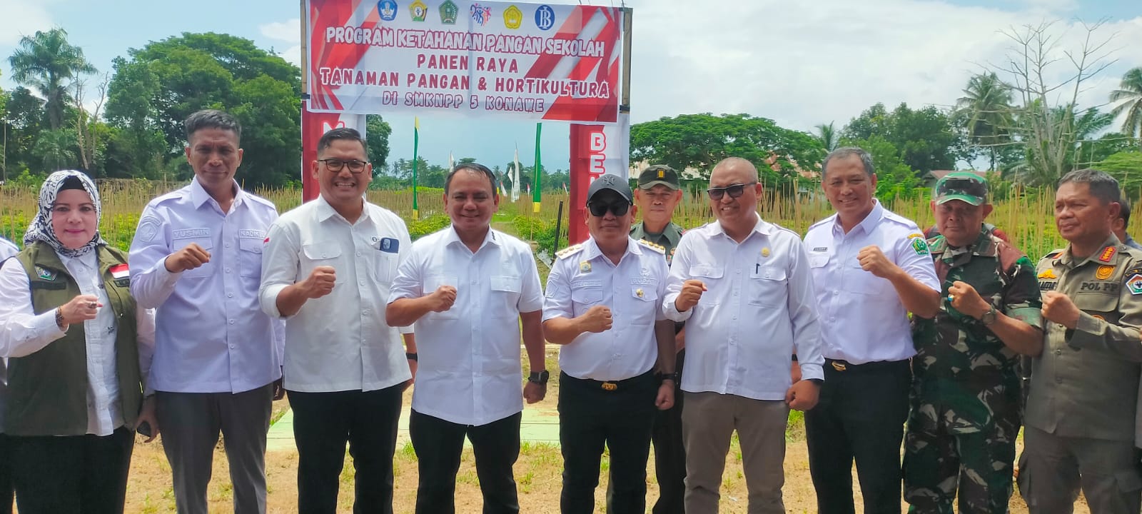 Ketgam: Penjabat Gubernur Sultra Komjen Pol (Purn) DR. (H.C) Andap Budhi Revianto, S.IK, MH (keempat dari kiri ) Penjabat Bupati Konawe Dr. H. Harmin Ramba, SE, MM (tengah) Ketua DPRD Konawe Dr. H. Ardin, S.Sos, M.Si (ketempat dari kanan), Sekda Konawe Dr. Ferdinand, SP, MH (ketiga dari kanan) Pabung 1417 Kendari Letkol Infanteri Azwar Dinata, SH (kedua dari kanan). Foto: Istimewa