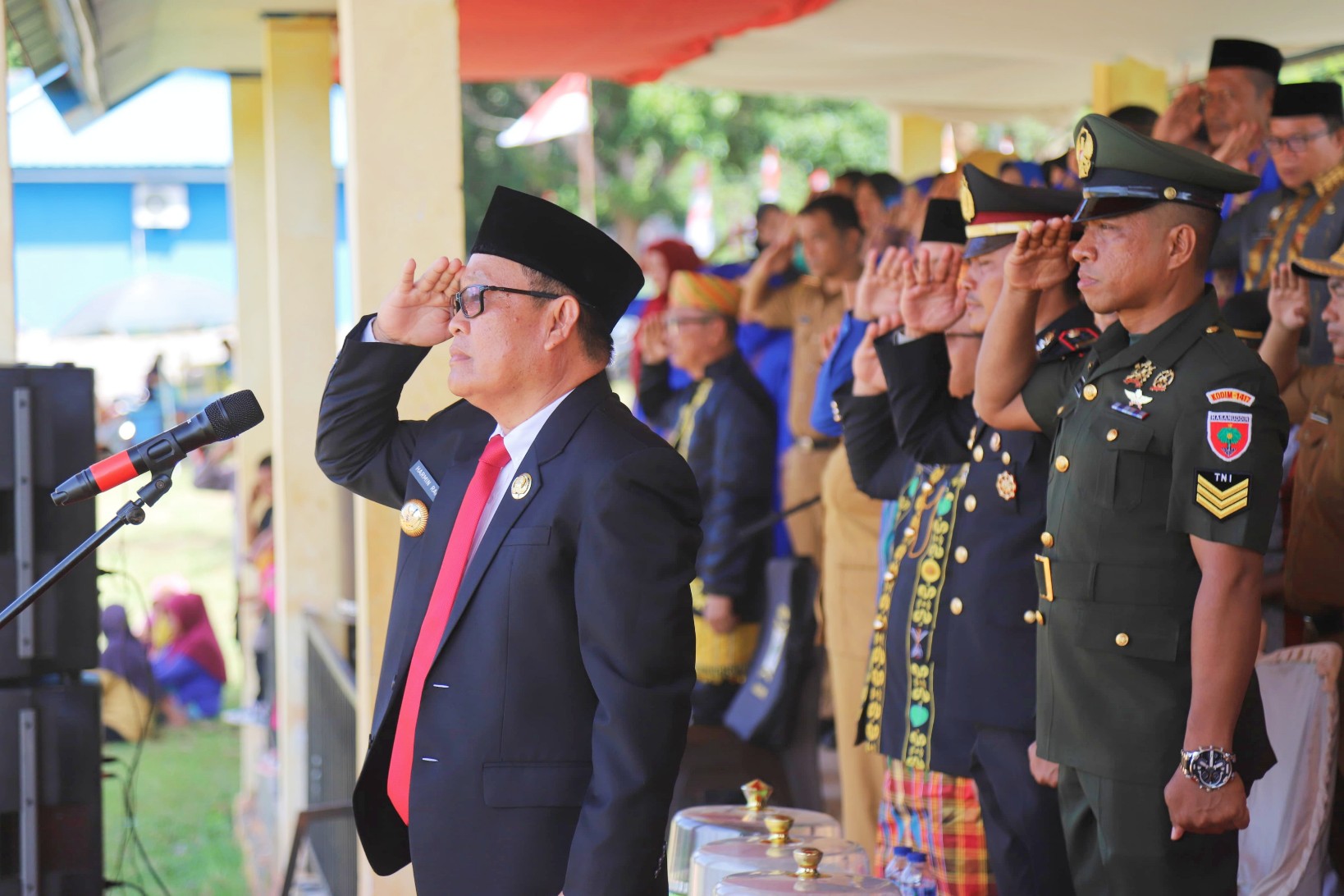 Ketgam: Penjabat Bupati Konawe Dr. H. Harmin Ramba, SE, MM saat memimpin Upacara HUT ke 20 Kecamatan Puriala, Senin 4 Maret 2024.