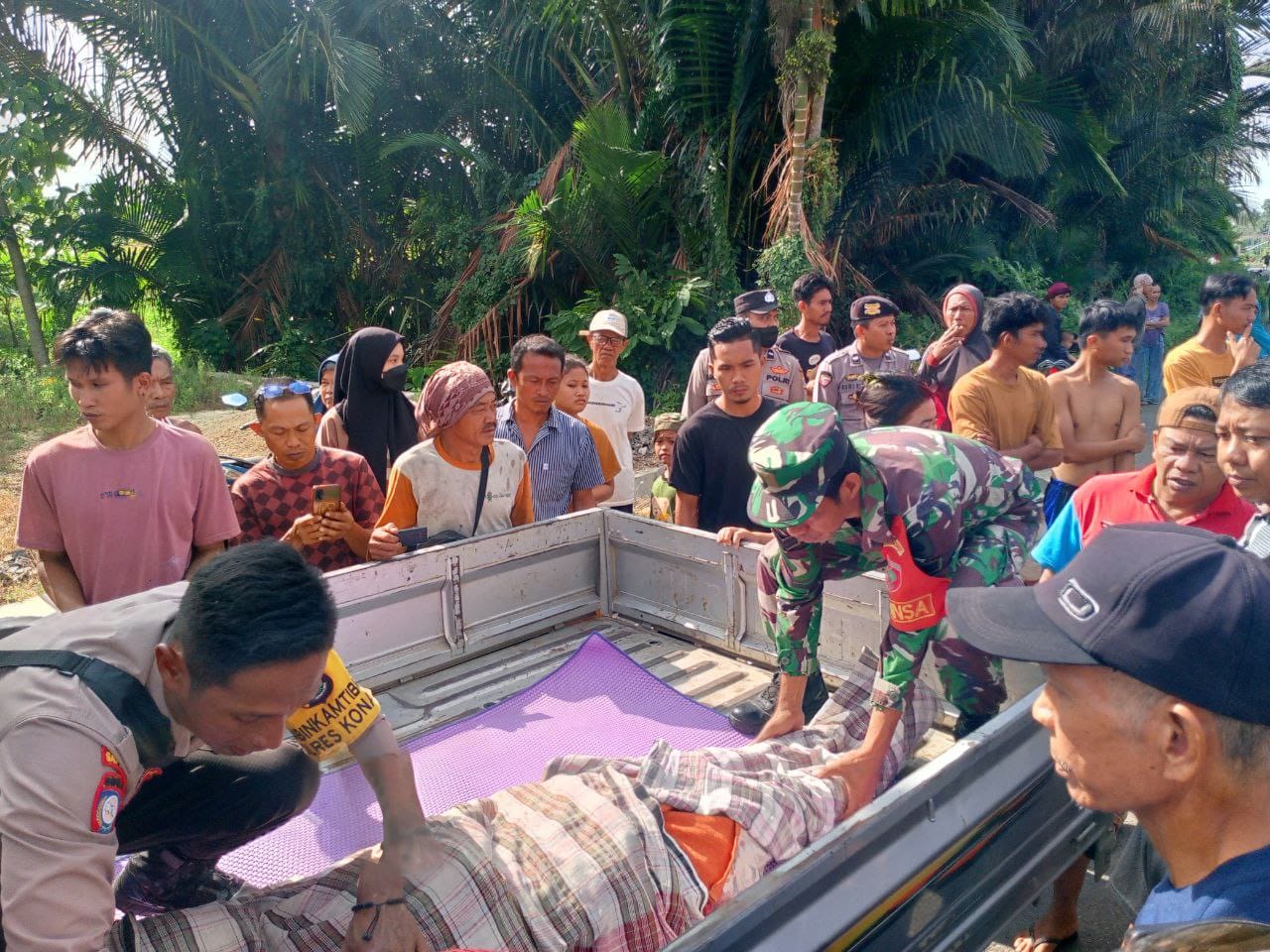 Ketgam: Korban Lamadu (55) saat dievakuasi dan dibawa ke RS Konawe. Foto: Istimewa