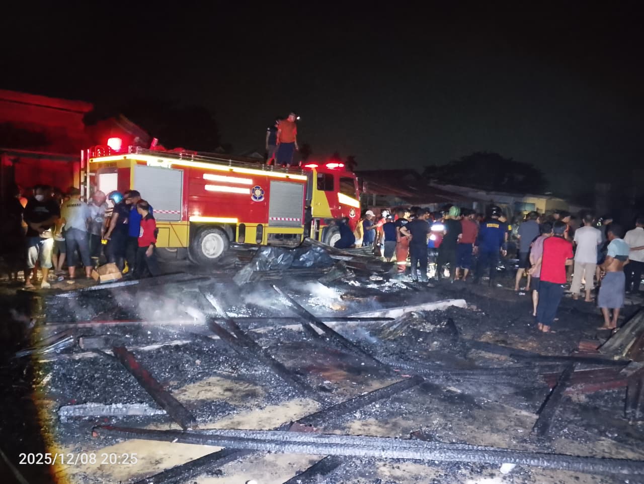TINDO.ID | KONAWE – Kebakaran hebat melanda Pasar Asinua, Kabupaten Konawe, Sulawesi Tenggara, pada Senin malam, 8 Desember 2025. Api yang muncul secara tiba-tiba membuat warga sekitar panik dan berusaha menyelamatkan barang dagangan masing-masing.