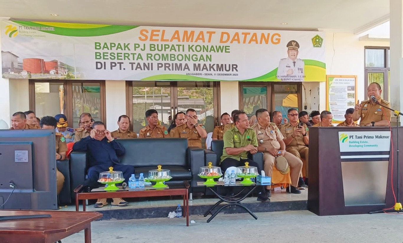 Penjabat Bupati Konawe pada kesempatan tersebut menyampaikan apresiasi kepada PT TPM yang telah memberdayakan masyarakat dengan cara mengakomodir 98 persen tenaga kerja lokal dari semua karyawan dan karyawati di PT Tani Prima Makmur.