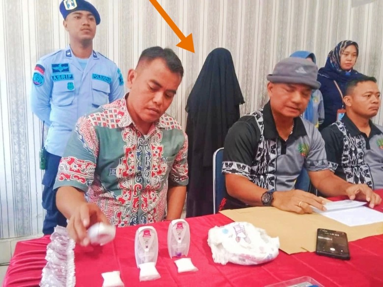 Perempuan tersebut ketahuan menyimpan narkoba di dalam popok anaknya yang masih usia di bawah lima tahun (Balita).