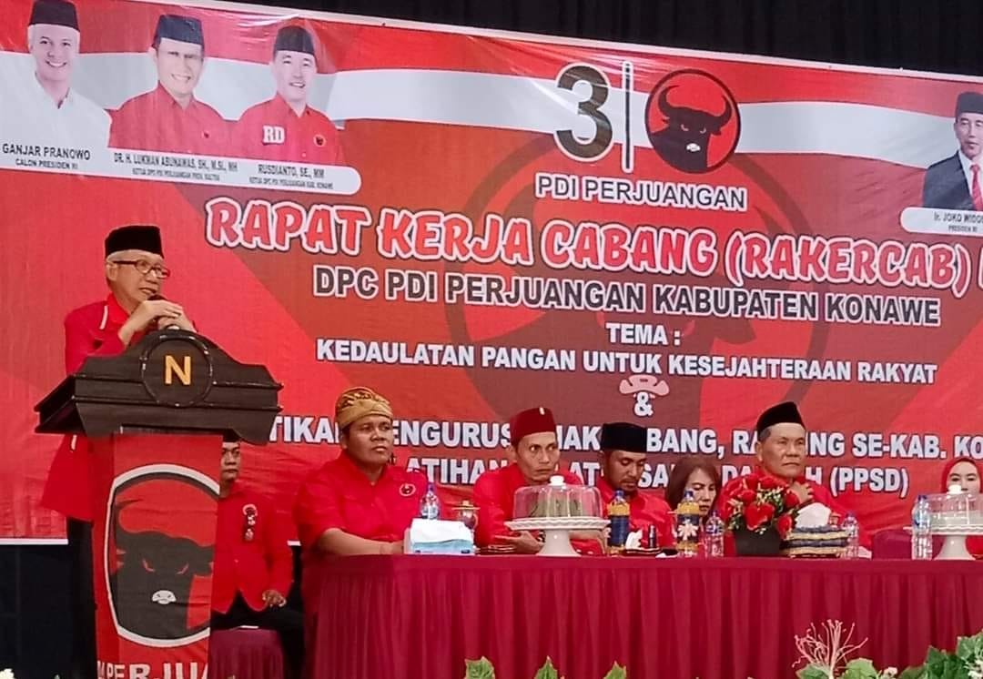 Hal tersebut ditekankan oleh mantan Wagub Sultra itu saat menghadiri Rapat Kerja Cabang (Rakercab) III Dewan Pimpinan Cabang (DPC) Partai Demokrasi Indonesia Perjuangan (PDIP) Kabupaten Konawe di Unaaha, Kamis 12 Oktober 2023.