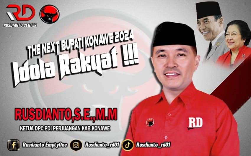 Ketua Dewan Pimpinan Cabang (DPC) PDI Perjuangan Kabupaten Konawe Rusdianto, SE, MM mengatakan dengan perolehan 6 kursi di DPRD, PDI Perjuangan sudah bisa mengusung kadernya sendiri pada Pemilihan Kepala Daerah (Pilkada), Bupati dan Wakil Bupati Konawe yang akan dihelat pada November 2024 mendatang.