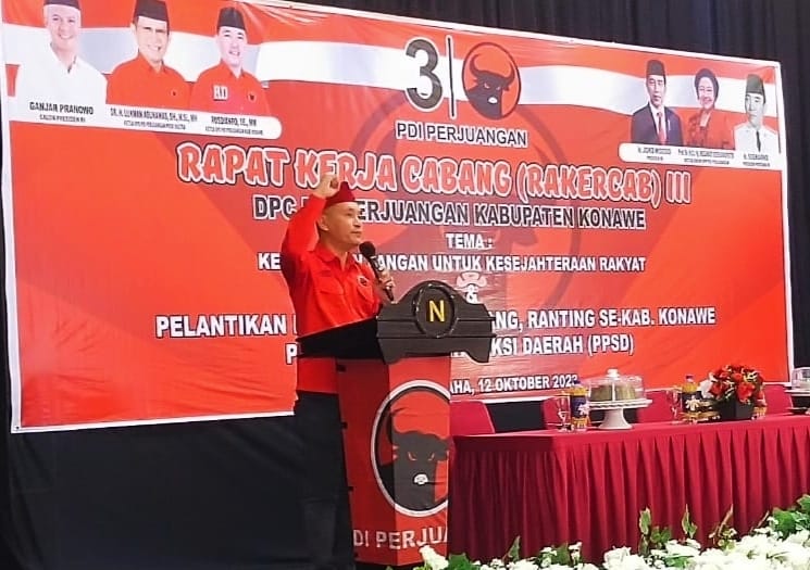 “PDIP Konawe selalu kalah di Pilpres. 2024 kita buktikan PDIP Konawe bisa. Kita menangkan Ganjar Pranowo sebagai Presiden RI,” kata Rusdianto membakar semangat pengurus partai.