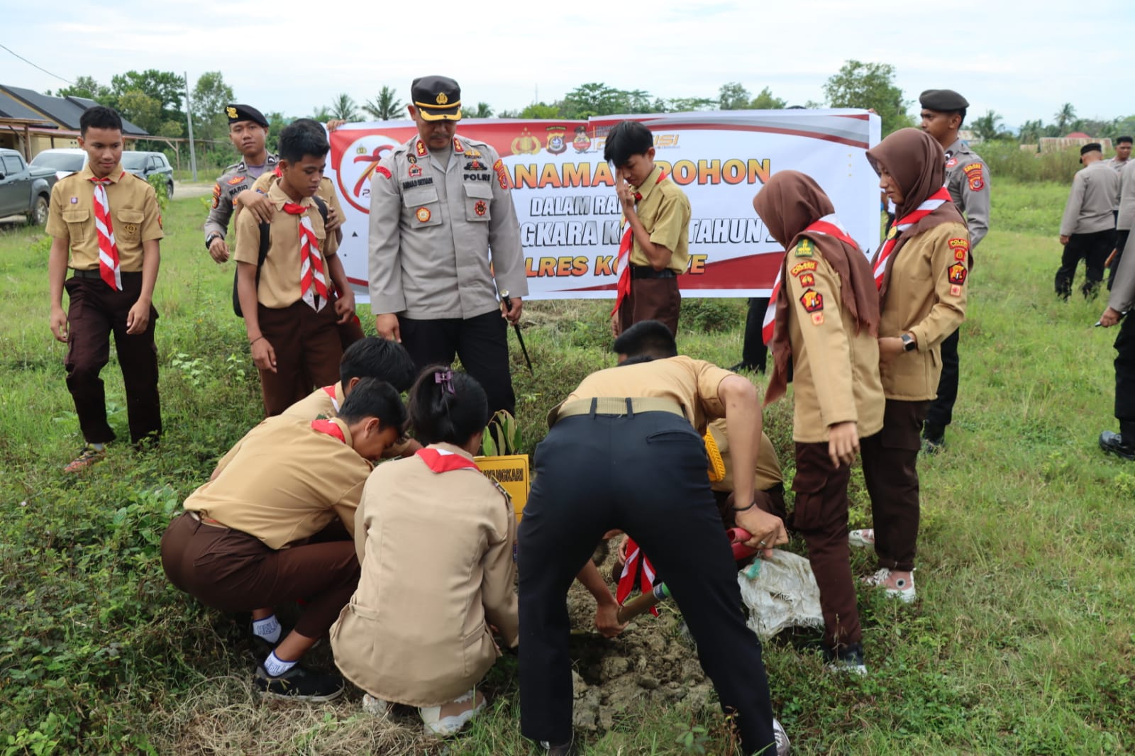 TINDO.ID | KONAWE – Dalam rangka memperingati Hari Bhayangkara ke-78, Polres Konawe melaksanakan kegiatan penanaman pohon pada Rabu (12/6) sekitar pukul 16.00 WITA. Kegiatan ini dipimpin oleh Kapolres Konawe, AKBP Ahmad Setiadi, dan diikuti oleh sejumlah pejabat serta tokoh masyarakat setempat.