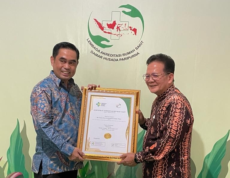 Sertifikat Akreditasi Paripurna tersebut diserahkan langsung oleh Direktur Utama Lembaga Akreditasi Rumah Sakit Damar Husada Paripurna (LARS-DHP) dr. Heru Ariyadi, MPH kepada Sekretaris Daerah (Sekda) Kabupaten Kolaka Timur (Koltim) Andi Muh Iqbal Tongasa S.STP M.Si di kantor The Royal Palace Tebet Jakarta, Selasa 5 Desember 2023.