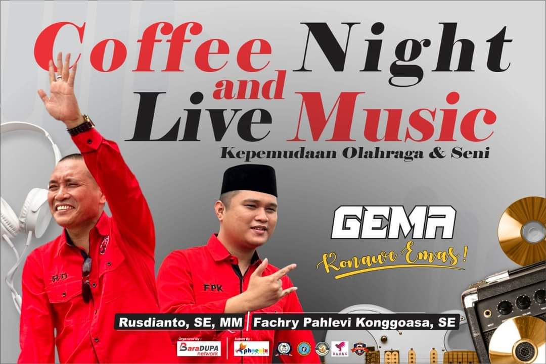 TINDO.ID | KONAWE – Bakal pasangan calon Bupati dan Wakil Bupati Konawe, Rusdianto dan Fachry mengahdiri undangan Coffee Night and Live Music dengan tema “Kepemudaan, Olahraga dan Seni” bertempat di Kelurahan Rawua Kecamatan Sampara, Kabupaten Konawe,.Sabtu14 September 2024) malam.