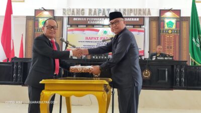 Ketgam: Ketua DPRD Kabupaten Konawe Dr. H. Ardin, S.Sos, M.Si (Kanan) bersama Penjabat Bupati Dr….