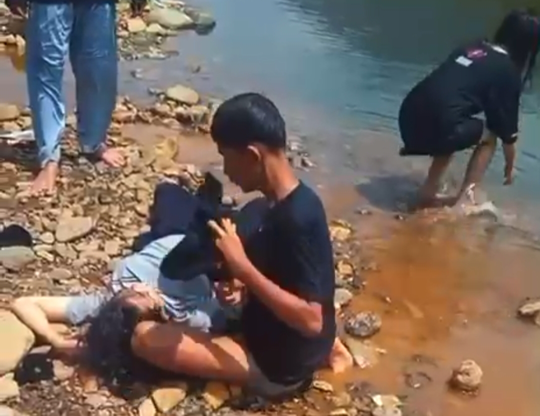 Ketgam: Korban saat dievakuasi oleh rekannya. Foto: Tangkapan Layar
