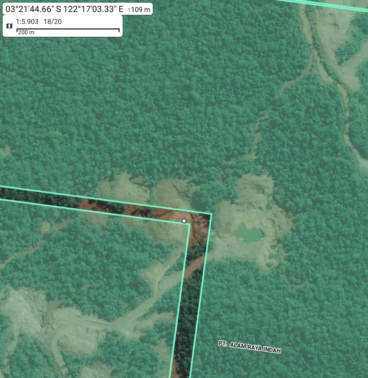 Dugaan kuat mengarah pada aktivitas penambangan tanpa izin yang kembali melibatkan PT Tristaco. Lokasi tersebut diketahui berada pada koordinat 03°21’44.51″ S, 122°17’02.97″ E dan 03°22’31.95″ S, 122°16’15.30″ E.