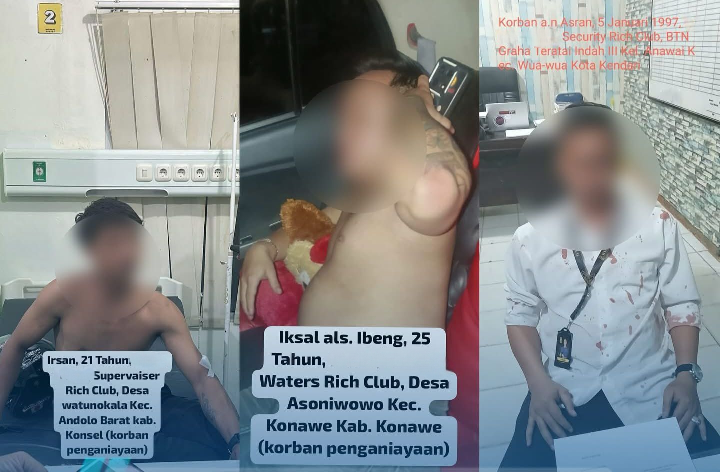 Aksi brutal itu menyebabkan ketiga korban mengalami luka serius dan harus segera dilarikan ke Rumah Sakit Korem Kendari untuk mendapatkan penanganan medis intensif.