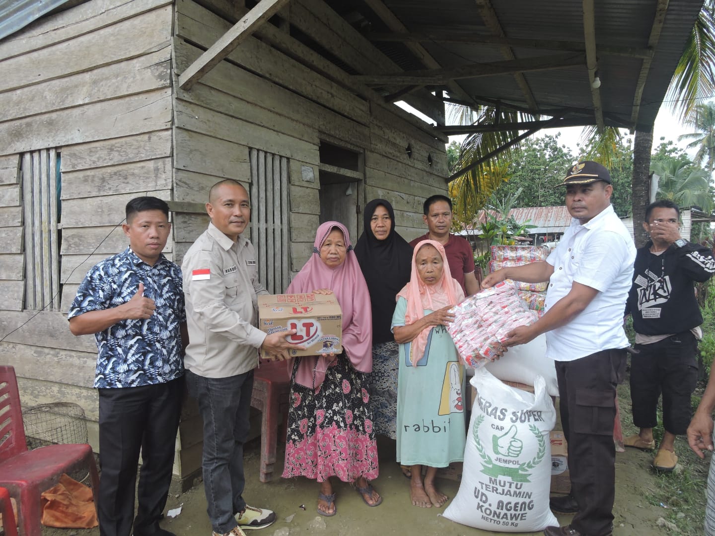Sementara di Desa Tanggodipo, Kecamatan Uepai, Rusdianto menyerahkan bantuan beras 50 kilogram, 10 pak Indomie, dan 10 dos air mineral.